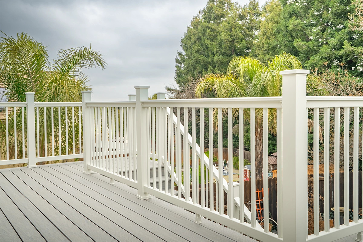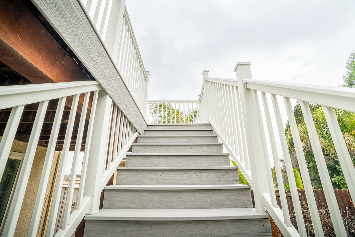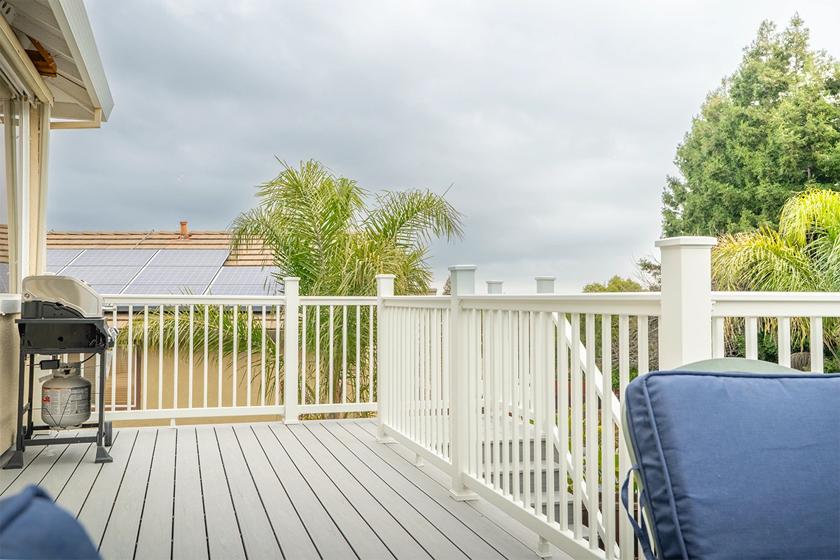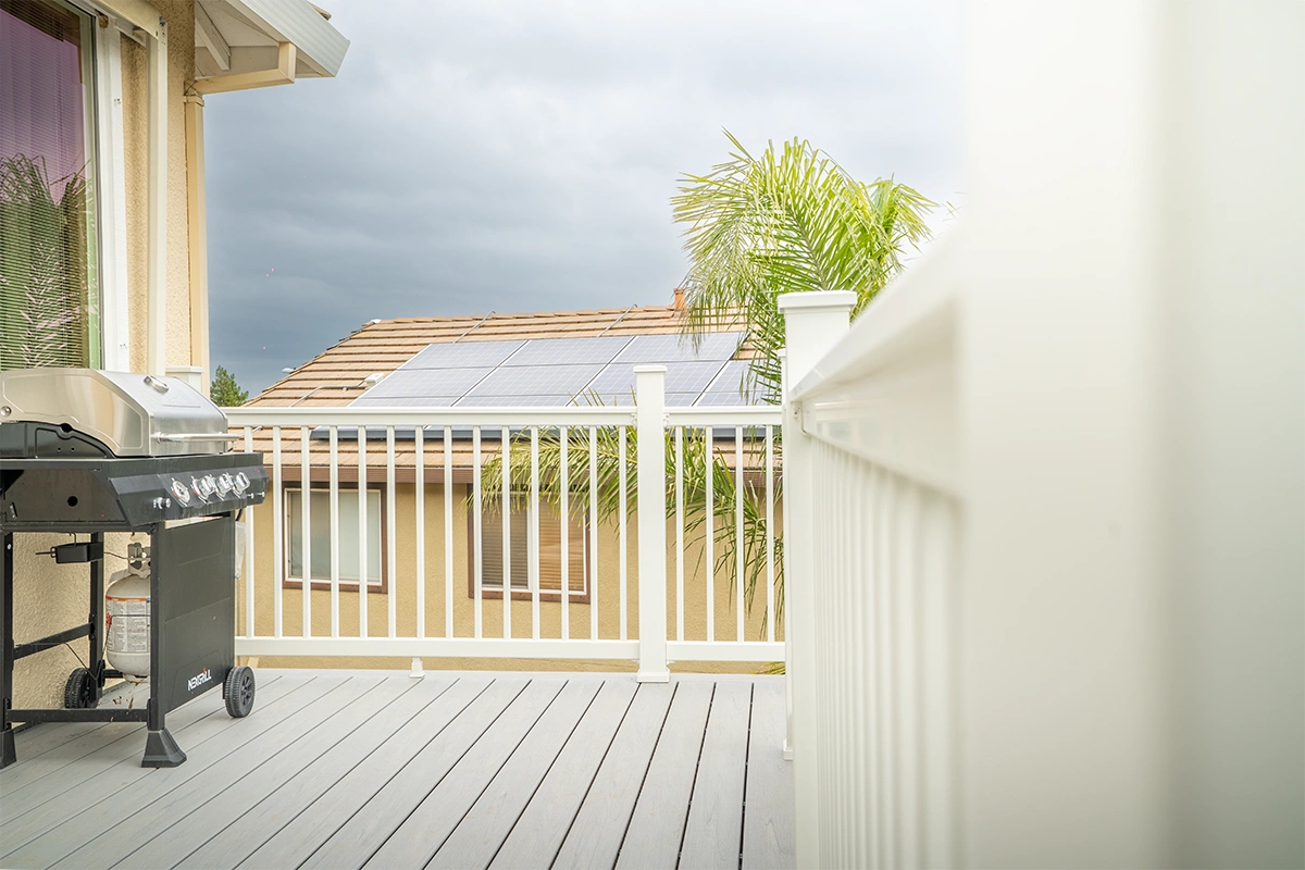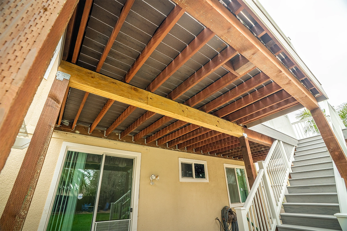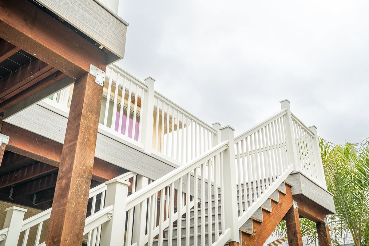 This deck rebuild and expansion project in Vacaville, CA included full demolition of the existing elevated deck system, structural framing replacement, a new Trex composite decking installation, Trex railing system, stair rebuild, engineered footing work, and concrete improvements. The project also included a 12’ x 12’ deck extension, new fascia, waterproofing details, and structural hardware upgrades to improve safety, durability, and long-term performance.